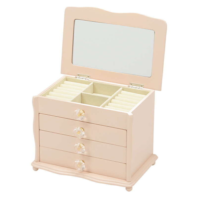 送料無料 コンパクト ジュエリーボックス アクセサリーボックス 完成品 可愛い 大容量 アクセサリーケース ジュエリーケース アクセサリー収納 アクセサリーケース 引き出し小物ケース ネックレス かわいい ミラー付 おしゃれ 誕生日 プレゼント ピンク MUD-6888PI